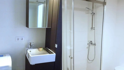 De badkamer is van alle gemakken voorzien. Je beschikt over een ruime douchecabine om heerlijk op te frissen, een wastafel met handige handdoekkast én een toilet. Voor extra gemak is er ook een wasmachine aanwezig.