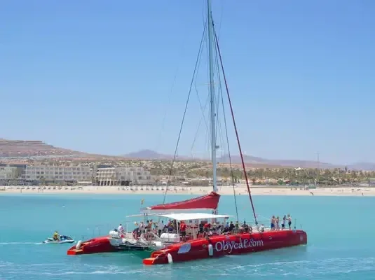 Geniet van een ontspannen zeiltocht langs de kust van Fuerteventura op een luxe catamaran. Inclusief drankjes en snacks.